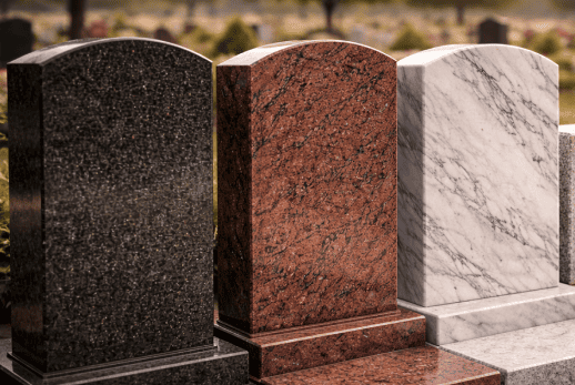 Мрамор – очень распространенный материал. Чаще всего серого или белого цвета, легко поддается обработке. Чтобы нанести портрет и текст на памятник из мрамора, нужно сделать вставку из металлокерамики, либо черного камня. Мрамор страдает от грибка и подвергается различным загрязнениям, поэтому нуждается в уходе.