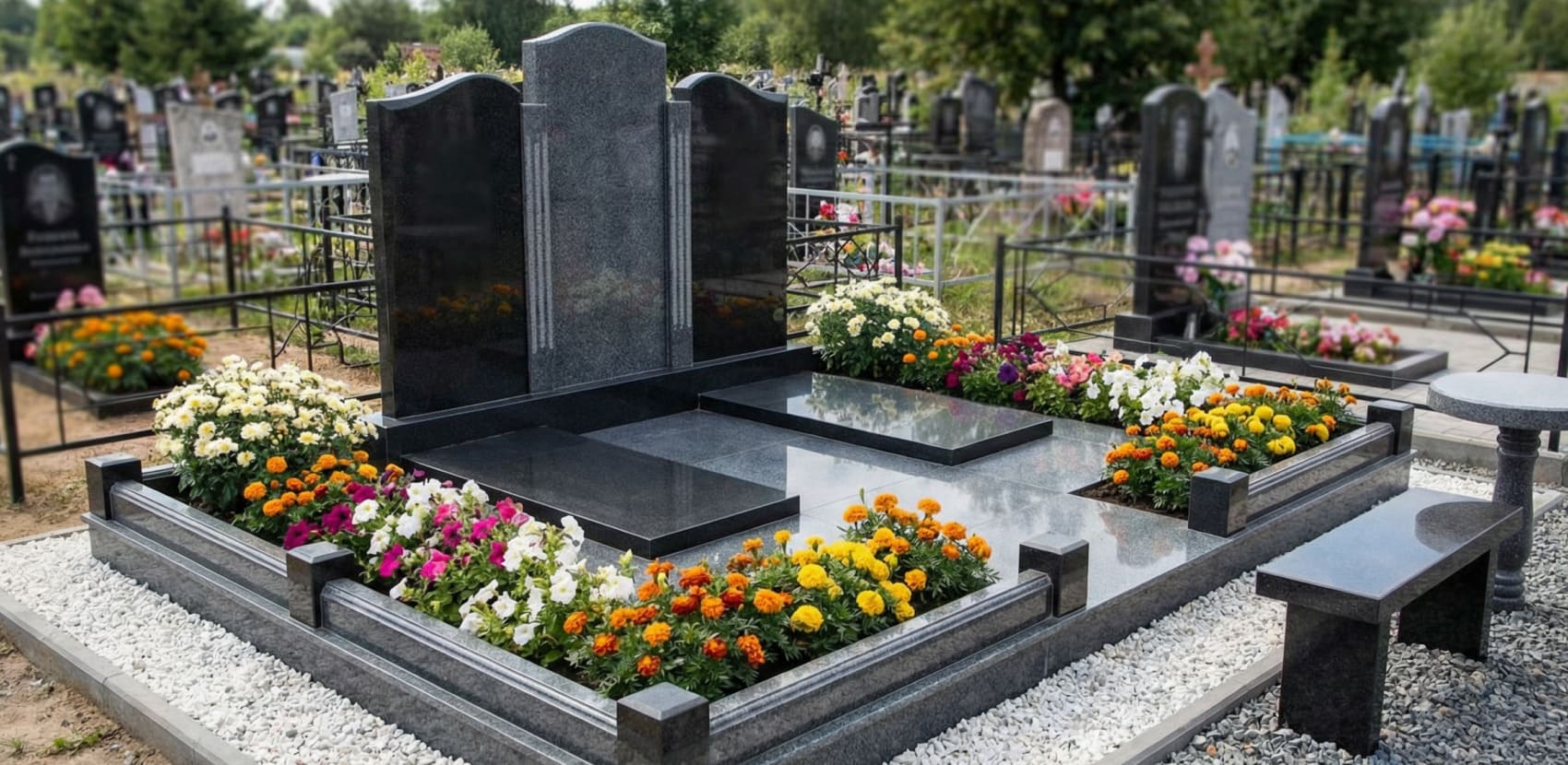 Похоронное бюро НАВСЕГДА предлагает полный комплекс услуг по изготовлению и возведению мемориальных комплексов любого размера, сложности и цвета на ваш выбор. Мемориальные комплексы изготавливаются на собственном производстве из гранита и мрамора высокого качества. Что позволяет гарантировать эстетичный вид и долговечность. Заказать и установить мемориальный комплекс на могилу в Алматы можно из любого города и страны, обсудив все детали по телефону или через интернет.