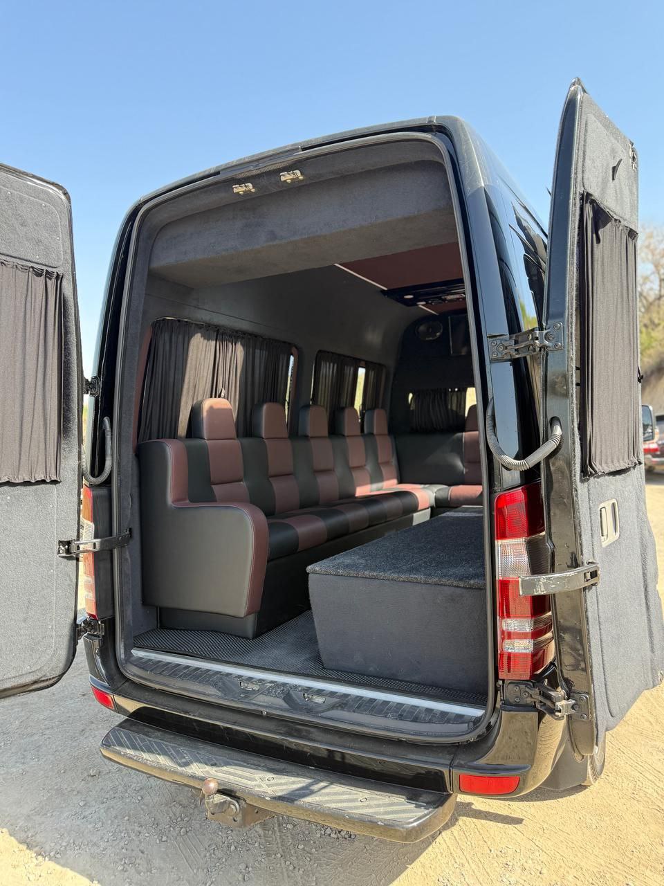 Катафалк класса VIP. Mercedes Sprinter Черный длинная база - до 12 сопровождающих. Диваны из эко-кожи, кондиционер. Салон светлый и тёмный.